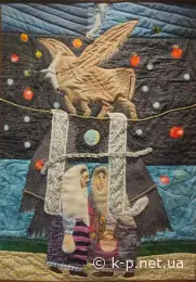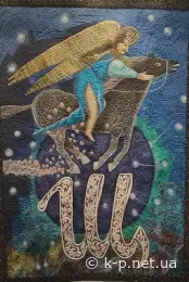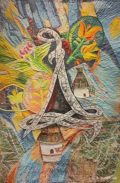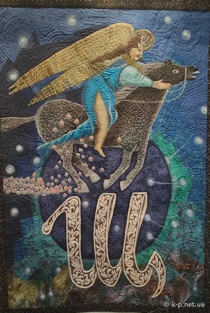 А тепер от "Артквілт. Абетка". Скільки літер - стільки майстринь Української Асоціації клаптикового шиття (Ukrainian Quilter's Association). Тут Харків, Київ, Кропивницький, Самар - і ще купа міст. Тільки літеру Ш робило двоє - Ілля та Яна Лашки. Загалом на виставці роботи відразу п'ятьох кам'янчан.